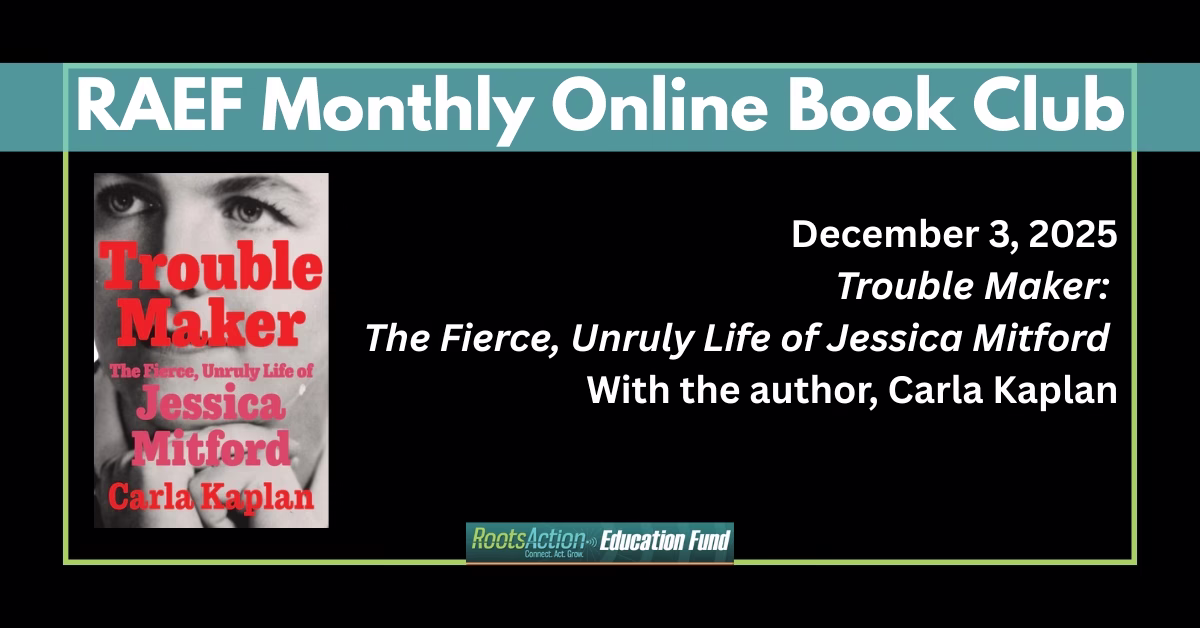 At 5 p.m. PT / 8 p.m. ET on the first Wednesday of every month, you can spend an hour asking your questions of the author of one of the most useful recent books for progressive activism. We’ll post information about each upcoming book and author here well ahead of time, to give you a chance to acquire and read the book beforehand. This is a free public service open to all.